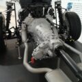 The four-speed gearbox was not bolted to the engine, but was a separate shaft-driven unit mounted between the second and third crossmembers. While the remote gearbox placement led to a complicated linkage to the column-mounted shifter, resulting in vague shifter action, it also improved legroom for the front passengers.
